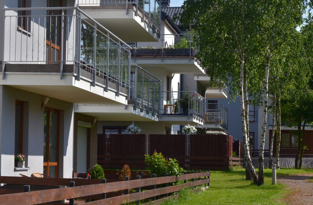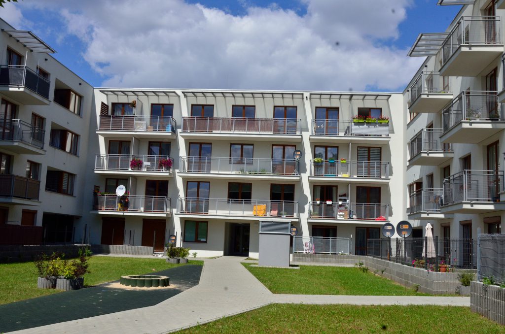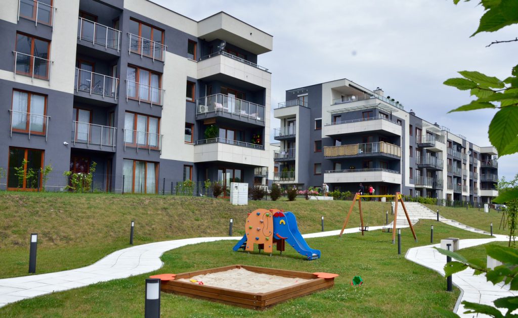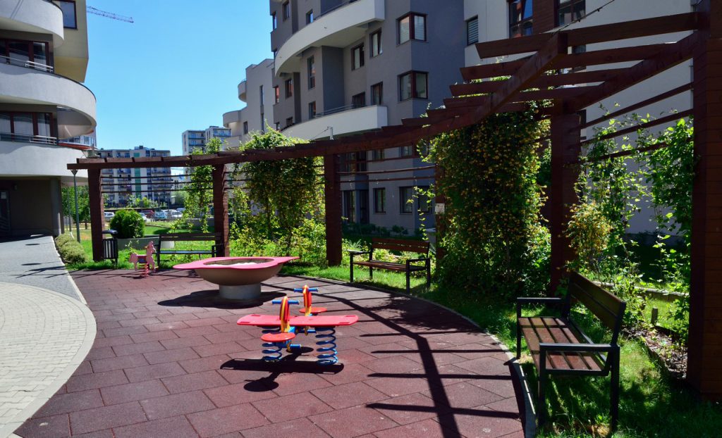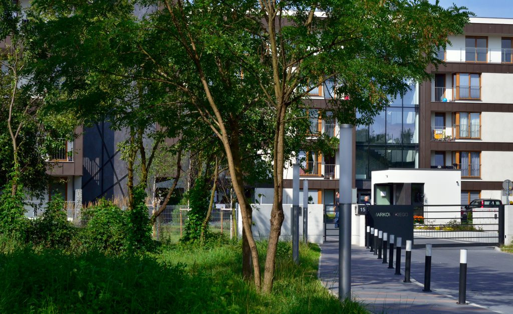 - niezamknięty ogrodzeniem teren zespołu mieszkaniowego, dbałość o otoczenie budynku poza terenem inwestycji (plac zabaw), a także przyjazne i atrakcyjnie zorganizowane biuro sprzedaży