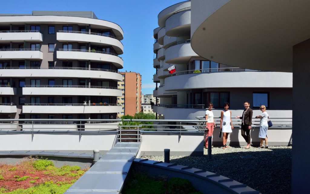 - zastosowanie przemyślanych rozwiązań eliminujących „mostki cieplne” i zapewniających szczelność budynków oraz innowacyjnych pomysłów, takich jak zielony dach i zieleń osłaniająca przed nadmiernym nagrzewaniem, czy wykorzystanie wody deszczowej do celów podlewania roślin i utrzymania porządku, a wszystko to z myślą o efektywności energetycznej i ochronie środowiska