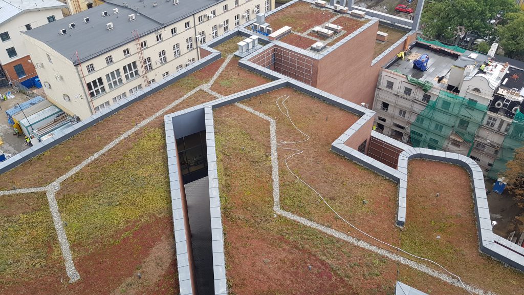 W Łodzi coraz bardziej umacnia się rynek biurowy. Na chwilę obecną powierzchnia biurowców zbliża się w Łodzi do 500 tys. mkw. W mieście lokują się duże firmy i konsorcja, takie jak: T-Mobile, Fujitsu, Mc Cormick, Geis, P&G, czy Ericsson. Ostatnia z nich ma swoją siedzibę w zaprojektowanym przez krakowskie biuro projektowe Horizone Studio obiekcie, który był zrealizowany dla firmy Ericpol, wchłoniętej przez Ericssona. Kontekst dla tego budynku biurowego klasy A stanowi historyczna zabudowa dawnego zespołu fabryczno-mieszkalnego Karola Scheiblera. Budynek ten został uznany przez Stowarzyszenie Architektów Polskich za najlepszy obiekt użyteczności publicznej w Polsce w 2015 roku i zdobył szereg ważnych nagród. Biurowiec ma na czterech kondygnacjach łączną powierzchnię 12 tys. mkw. Składa się z dwóch skrzydeł połączonych przeszklonym lobby. Elewację pokrywa cegła sprowadzona z duńskiej manufaktury, co nadało budynkowi skandynawski charakter. To jeden z powodów, dla których biurowiec przywodzi na myśl architekturę skandynawską.