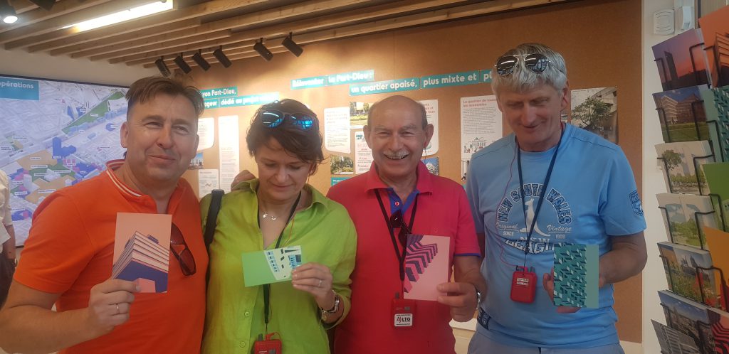 Przez trzy dni grupie towarzyszyli architekci z największego w mieście biura projektowego Sud Architectes, mającego swoje oddziały w siedmiu miastach świata, m.in. w Warszawie. Dzięki nim uczestnicy tego studyjnego wyjazdu mieli możliwość zapoznania się z dużymi rewitalizowanymi kwartałami miasta, takimi jak północna część półwyspu Presquille, wpisana na listę Unesco, dzielnica Vaise, biznesowa dzielnica Part-Dieu, Zac Des Girondins, czy dzielnica La Confluence. Największe wrażenie zrobiła ta ostatnia z ultra nowoczesnymi obiektami architektonicznymi.