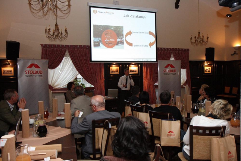 Na miejscu czekał na nas szereg niespodzianek …m.in zwiedzanie Firmy Stolbud Włoszczowa S.A Ponadto udaliśmy się na Dworzec Włoszczowa Północ, gdzie nasza obecność została uwieńczona na pamiątkowym zdjęciu. Nie lada atrakcją okazały się przeloty helikopterem, dzięki którym każdy uczestnik spotkania mógł podziwiać Firmę Stolbud Włoszczowa S.A. i ZPUE S.A. oraz całą panoramę miasta z lotu ptaka. Po południu wszyscy goście zostali zaproszeni na prezentację Firmy Private Brokers, pt. ” Pieniądze na bank. 6 powodów, dla których deweloperzy wybierają Private Brokers” .